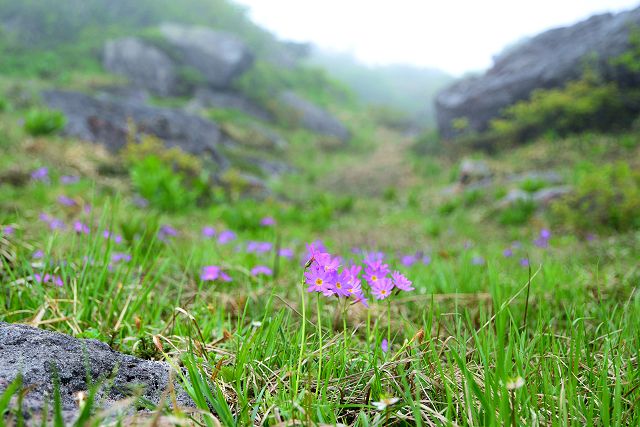 トンビ岩コース・御前坂に咲くハクサンコザクラ(写真:2017年8月05日 12時05分撮影)