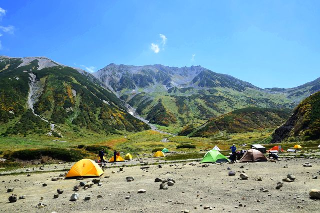 この雷鳥沢キャンプ場は、剱岳登山を目指す登山者のベースキャンプ、立山縦走や奥大日岳へ向かう登山者の拠点、もちろん室堂周辺を散策するだけの家族キャンプでの利用もできます。8月の登山シーズンピーク時には、キャンプ場一杯に色とりどりのテントが張られちょっとした景観になります。キャンプ場周辺には、雷鳥沢ヒュッテやロッジ立山連峰といった山小屋があり温泉に入ることも出来ます。